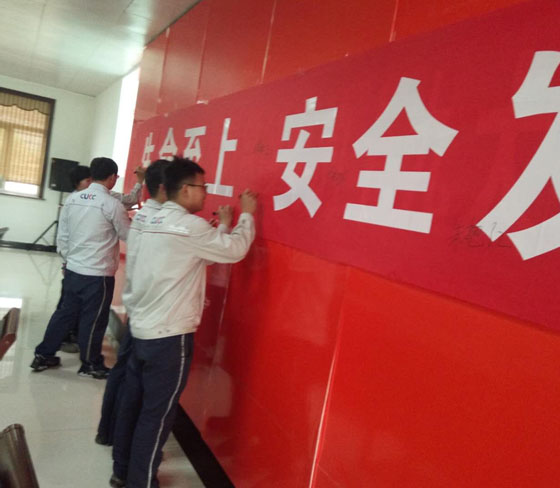 (5)公司安全誓詞:企業(yè)安全生產(chǎn)是我的崇高職責(zé),為了公司安全生產(chǎn),為了家庭幸福美滿(mǎn),我們一定要做到“安全時(shí)刻在線(xiàn),幸福相伴終生”,堅(jiān)決履行自己的安全職責(zé),遵守安全操作規(guī)程、規(guī)章制度,自覺(jué)做到不傷害自己、不傷害他人、不被他人傷害;堅(jiān)決完成安全生產(chǎn)任務(wù),做一名本質(zhì)安全型員工!